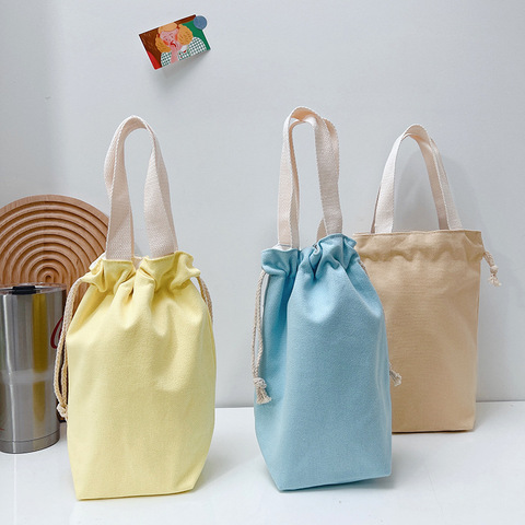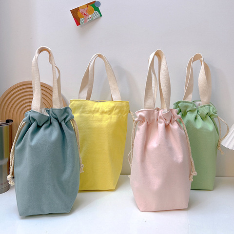 작은 신선한 졸라매는 끈 캔버스 가방 손 핸드백 일본 휴대용 도시락 가방 대용량 묶음 도시락 가방